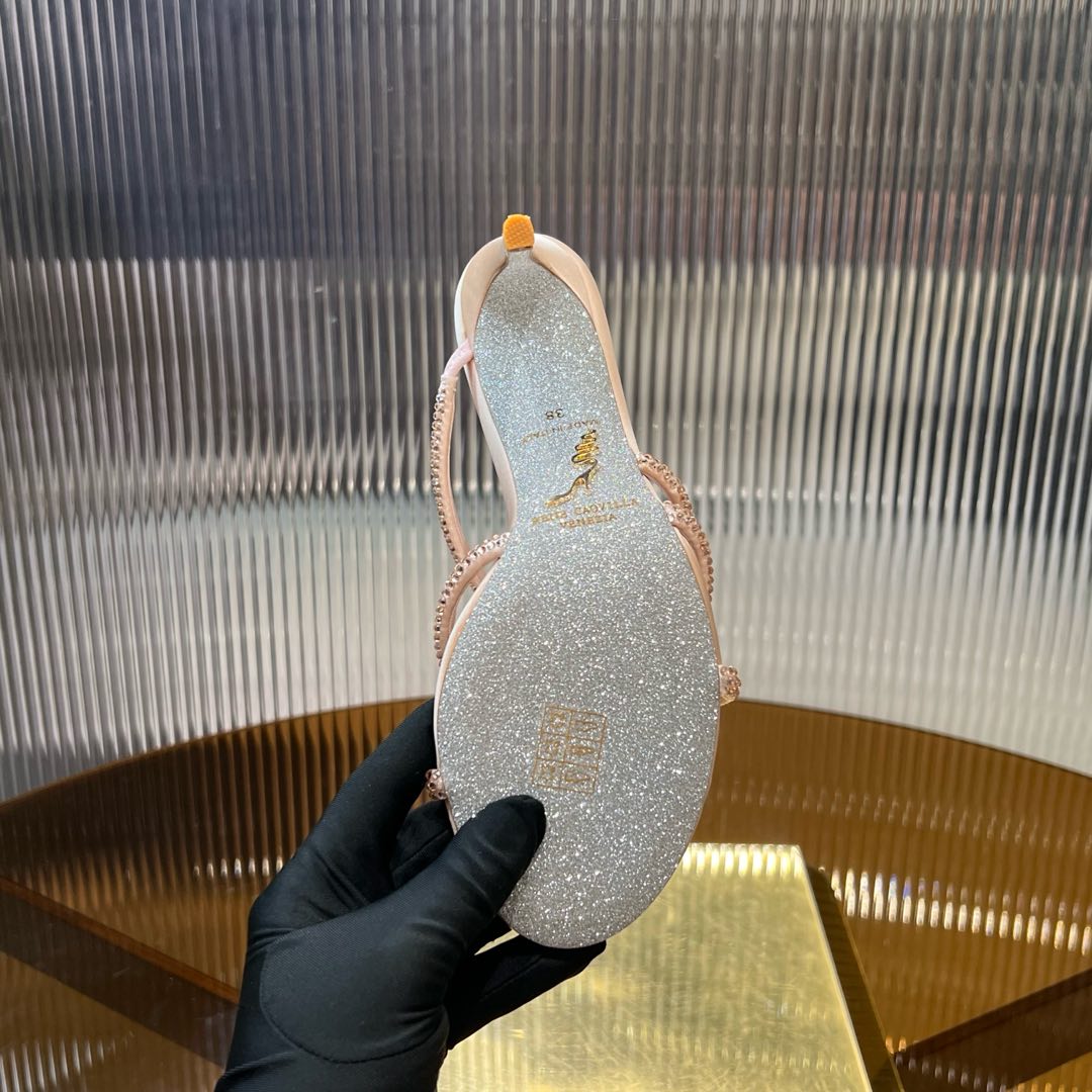 RC 25C Flower-Studded Diamond High-Heeled Sandals Pink Sheepskin 174913
