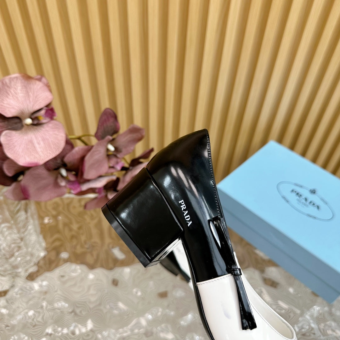 PRA BRUSHED PUMPS WHITE AND BLACK CALFSKIN