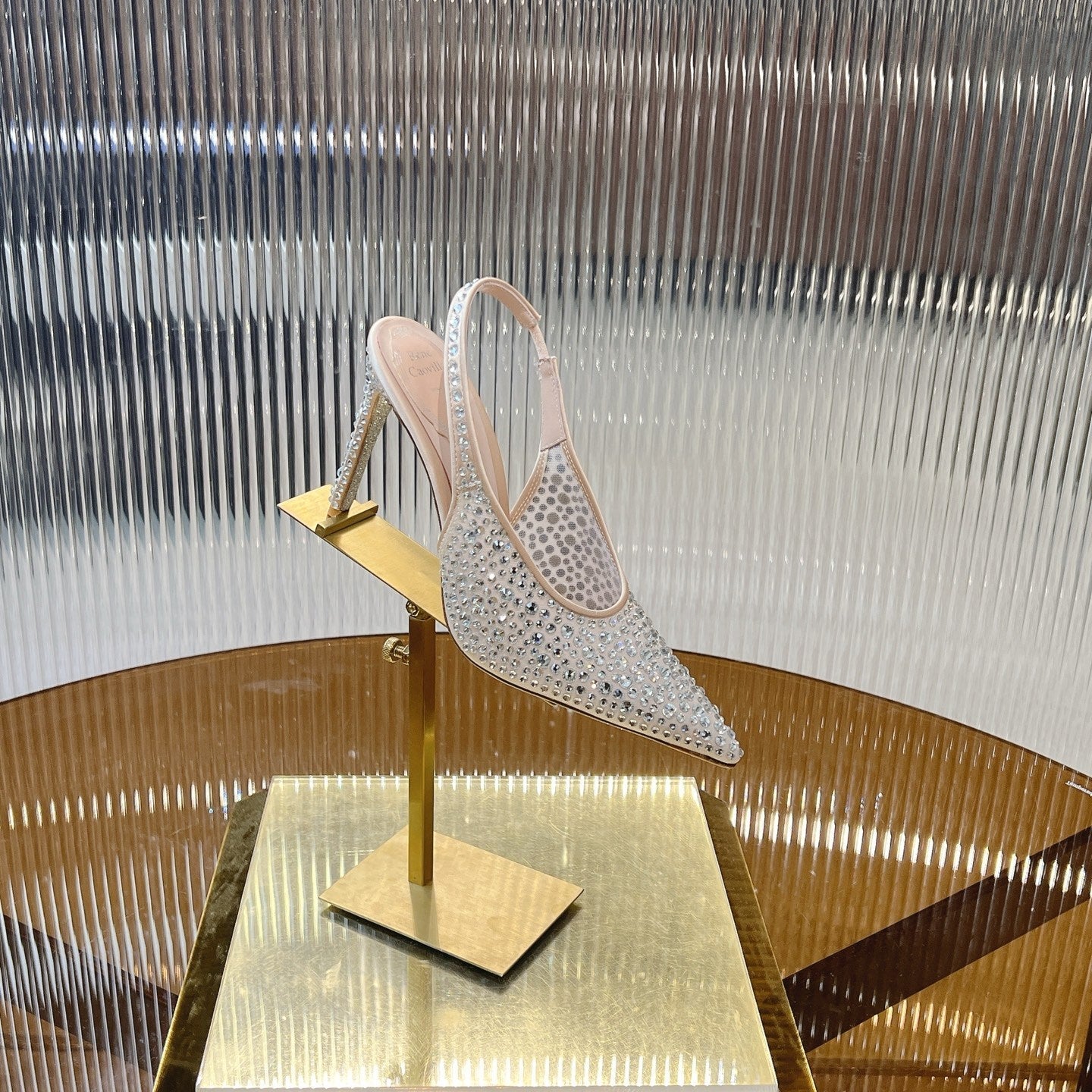 RC Slingback Shoe 1cm Pink Rhinestone Sheepskin 281984