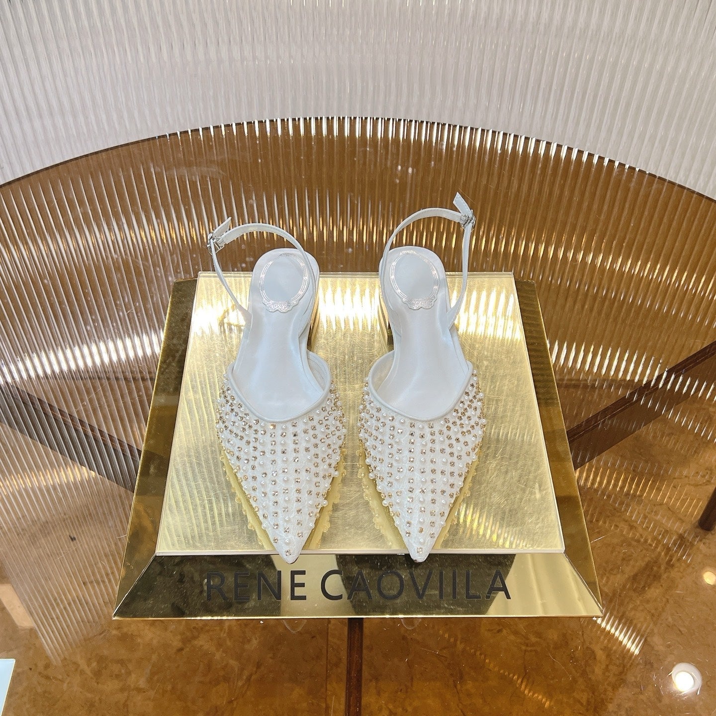 RC Slingback Shoe 7.5cm White Rhinestone Sheepskin 281985