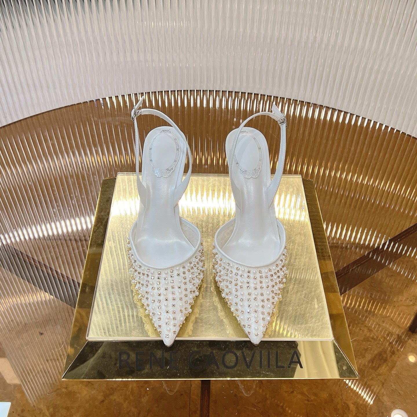 RC Scarpin Shoe 7.5cm White Rhinestone Sheepskin 281987