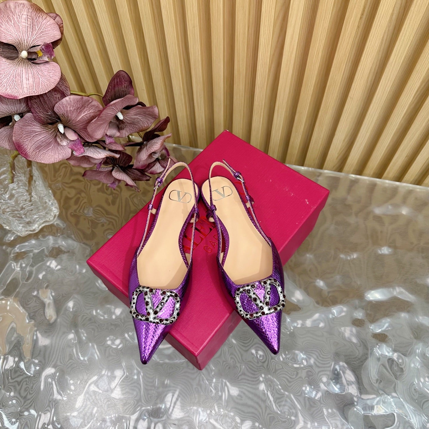 VT Slingback Flat Pink Snake-grain Leather 331936
