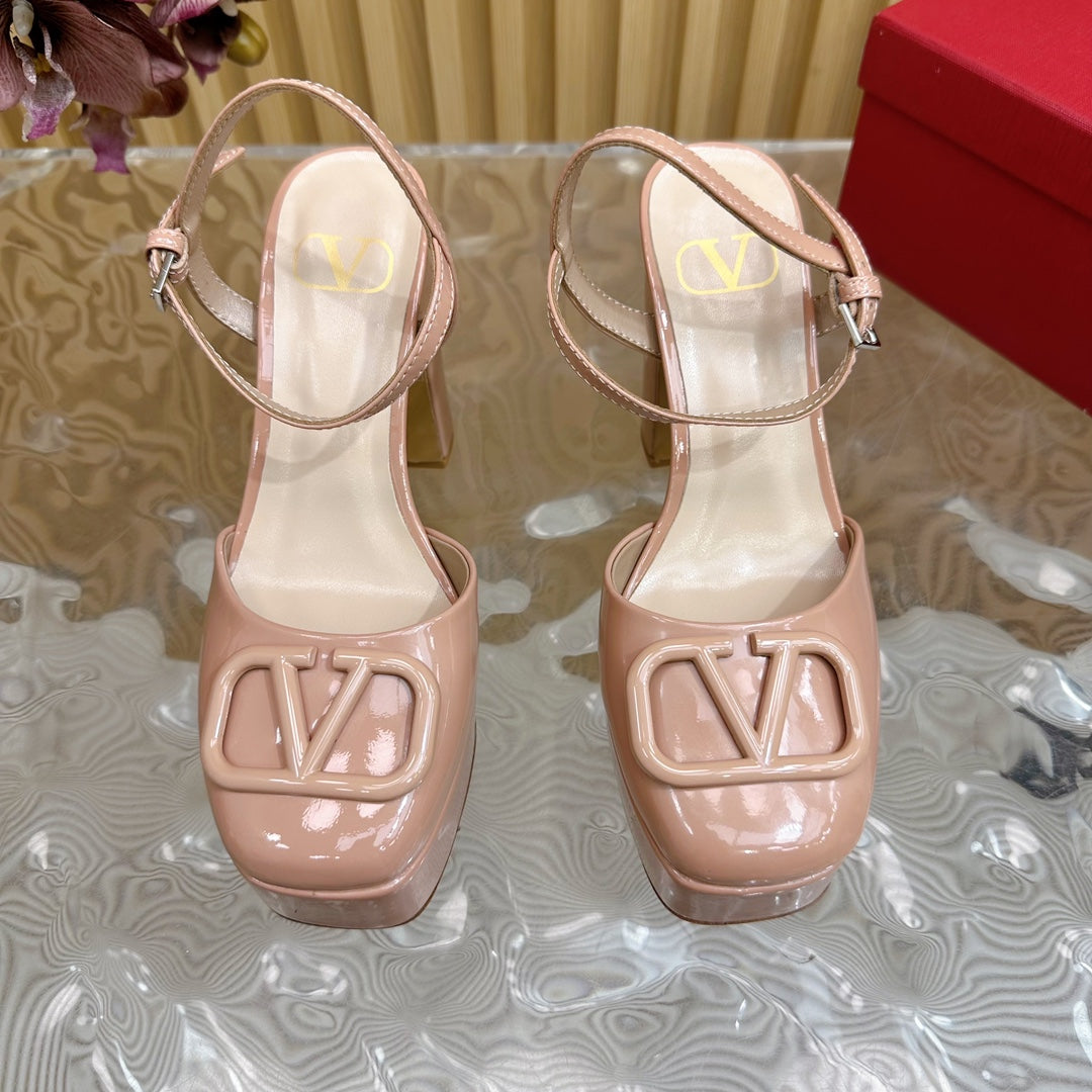 VT Signature 115mm Patent Leather Platform Pumps Nude Calfskin 286475