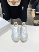 CHLOÉ NAMA SNEAKER 5 CM IN WHITE MIX GREEN CALFSKIN