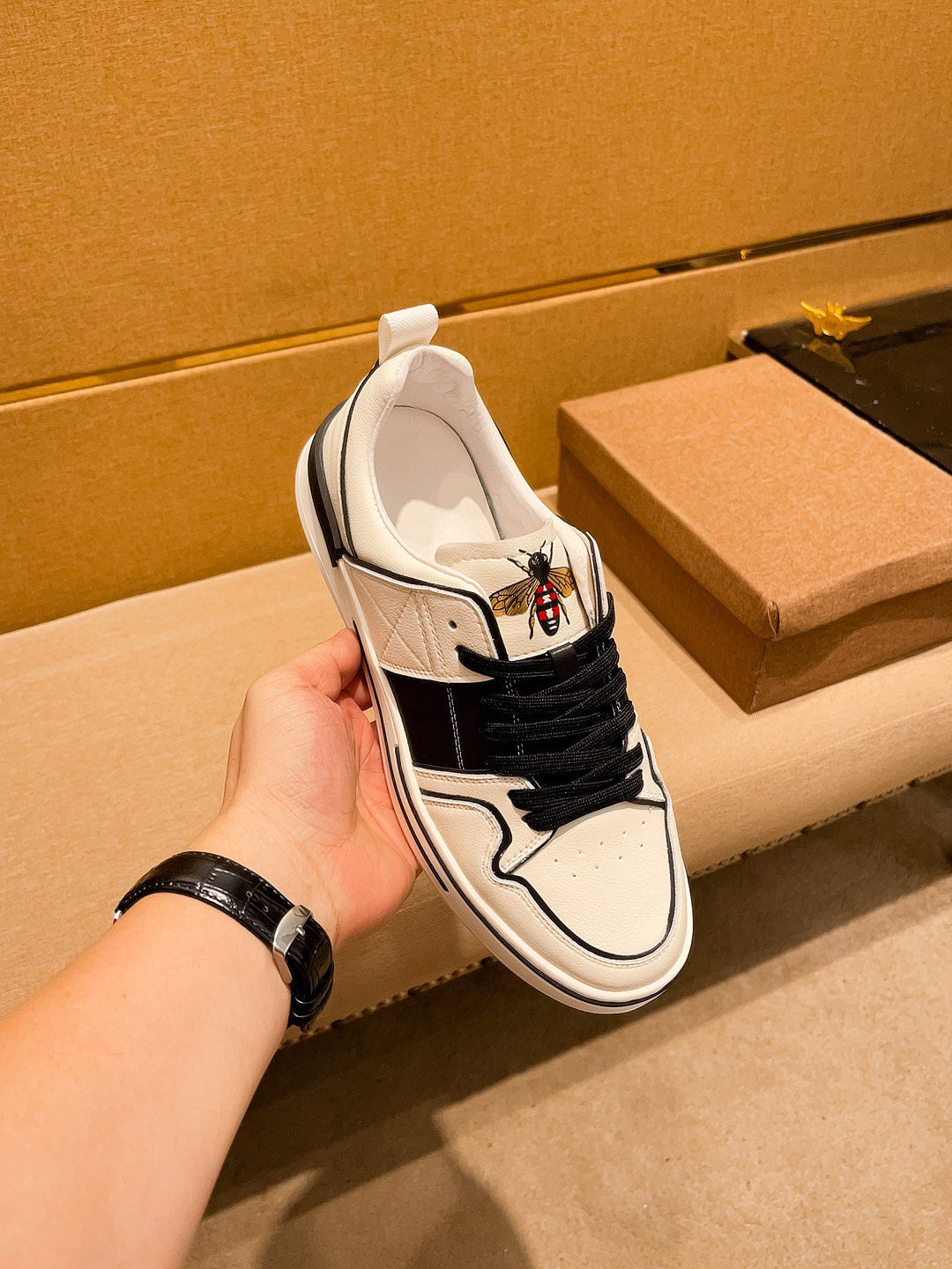 GG Men's Sneaker White Black Cowhide 671711