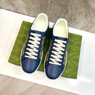 GG Men's Supreme Sneaker Navy Blue Canvas Cowhide 525940