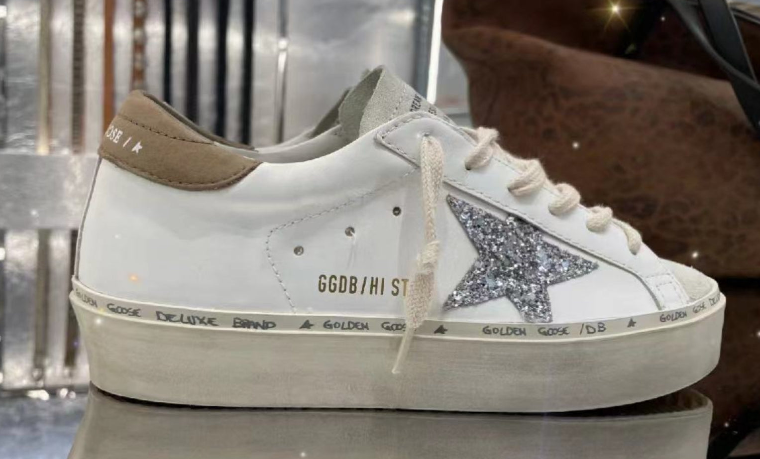 golden goose hi star grey suede silver glitter star