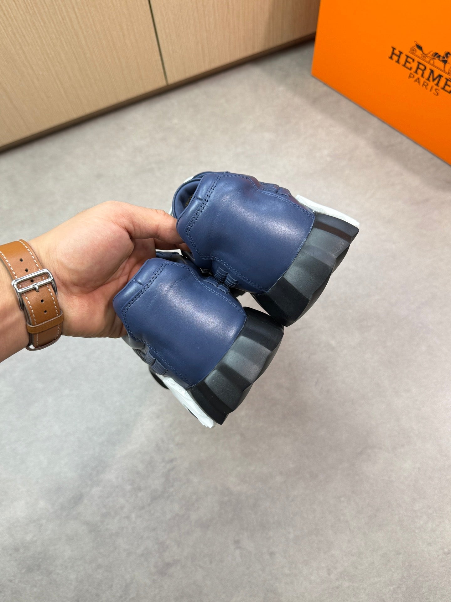 HM Men's Bouncing Sneaker Navy Blue Calfskin 696028