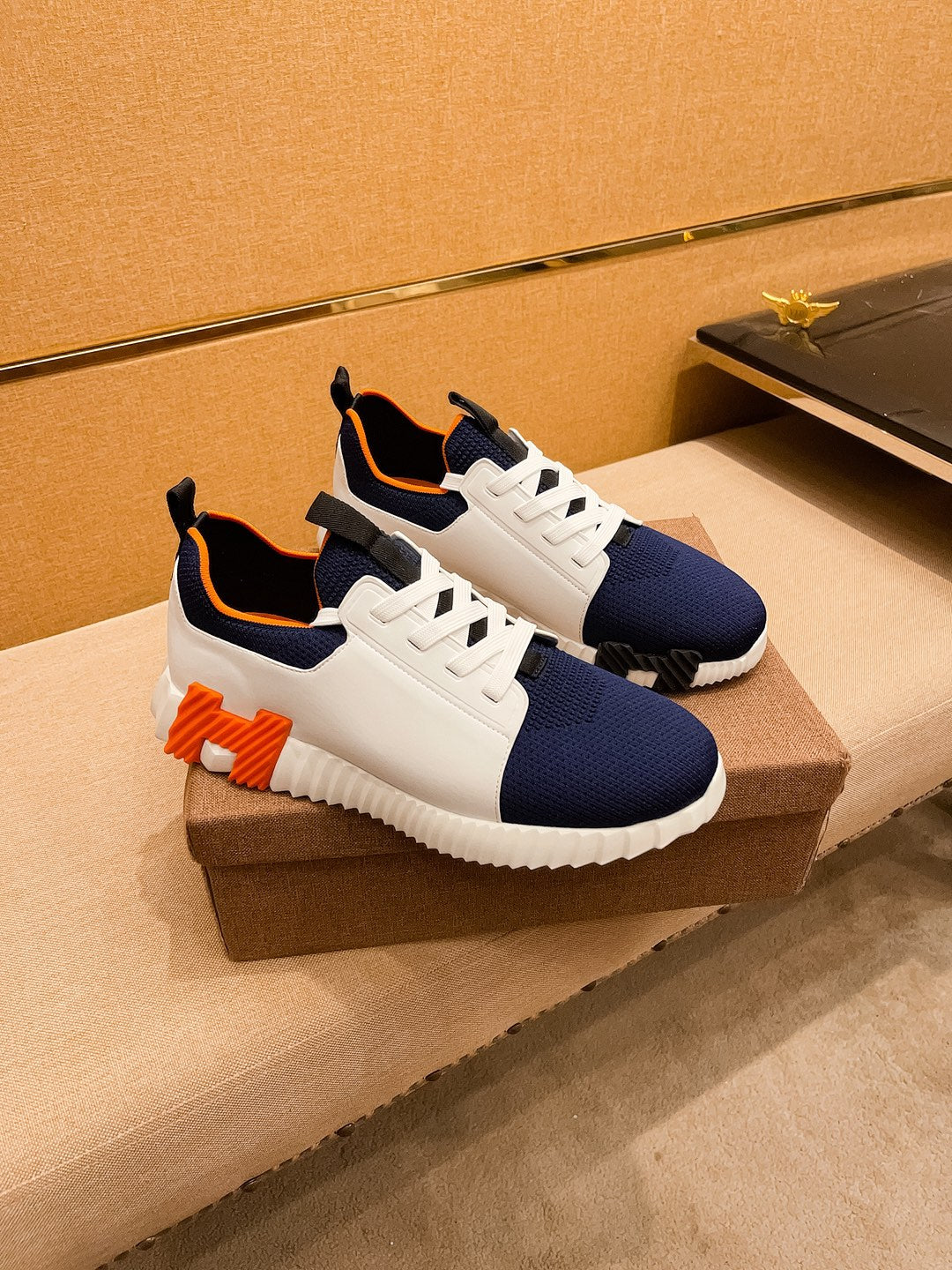 HM Men's Depart Slip-on Sneaker White Blue Knit Cowhide 263681