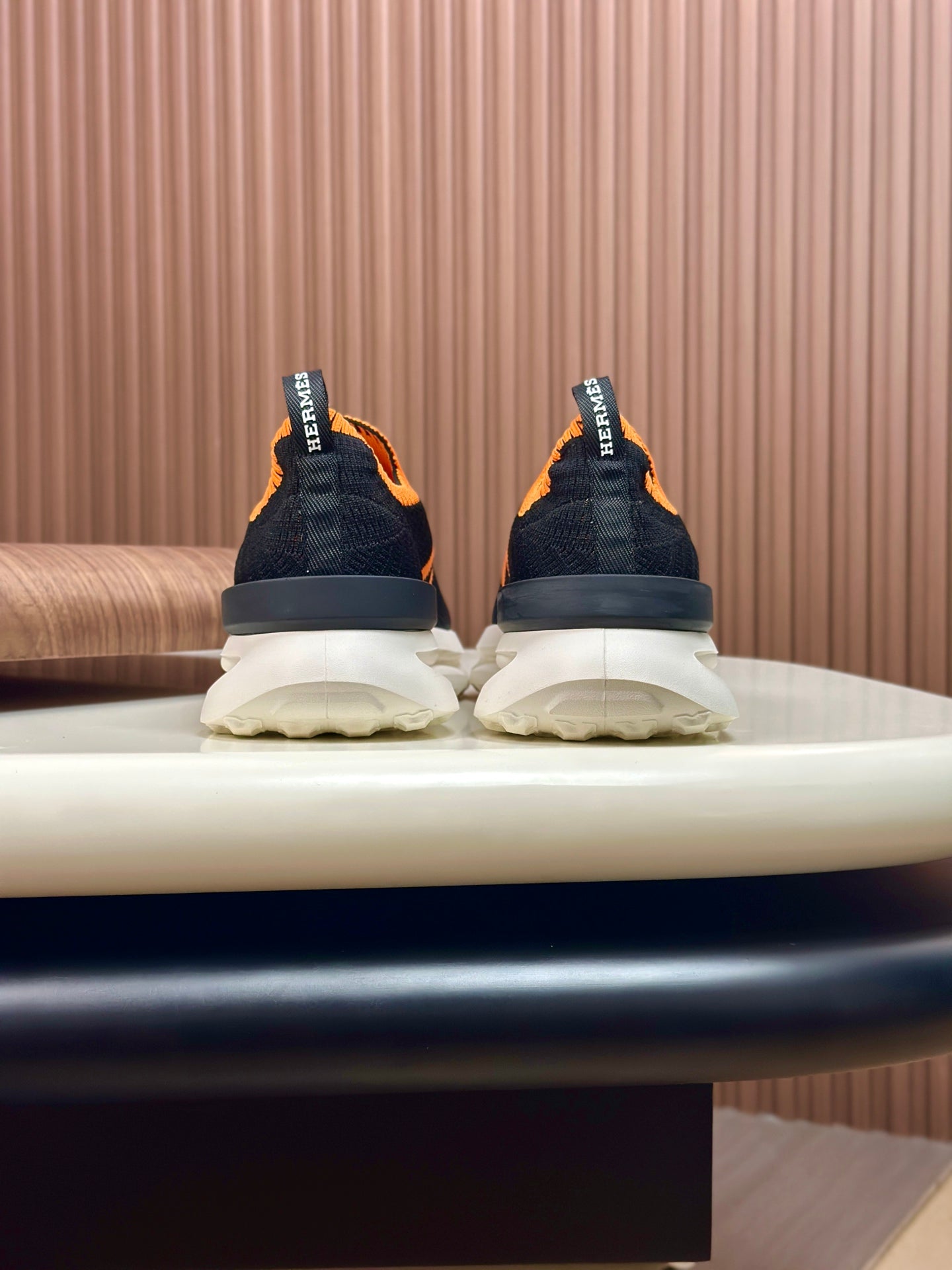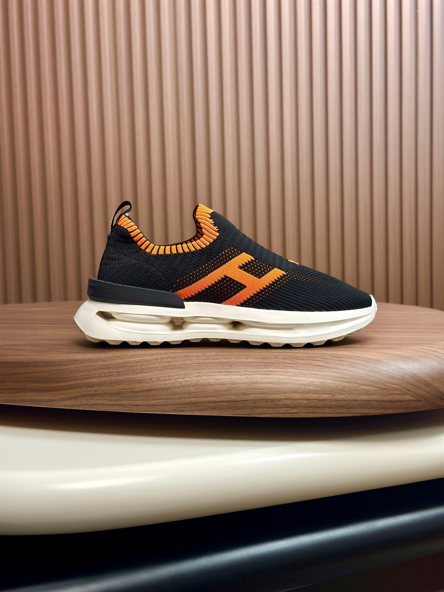 HM Men's Slip on Sneaker Black Orange Flyknit Fabric 690058