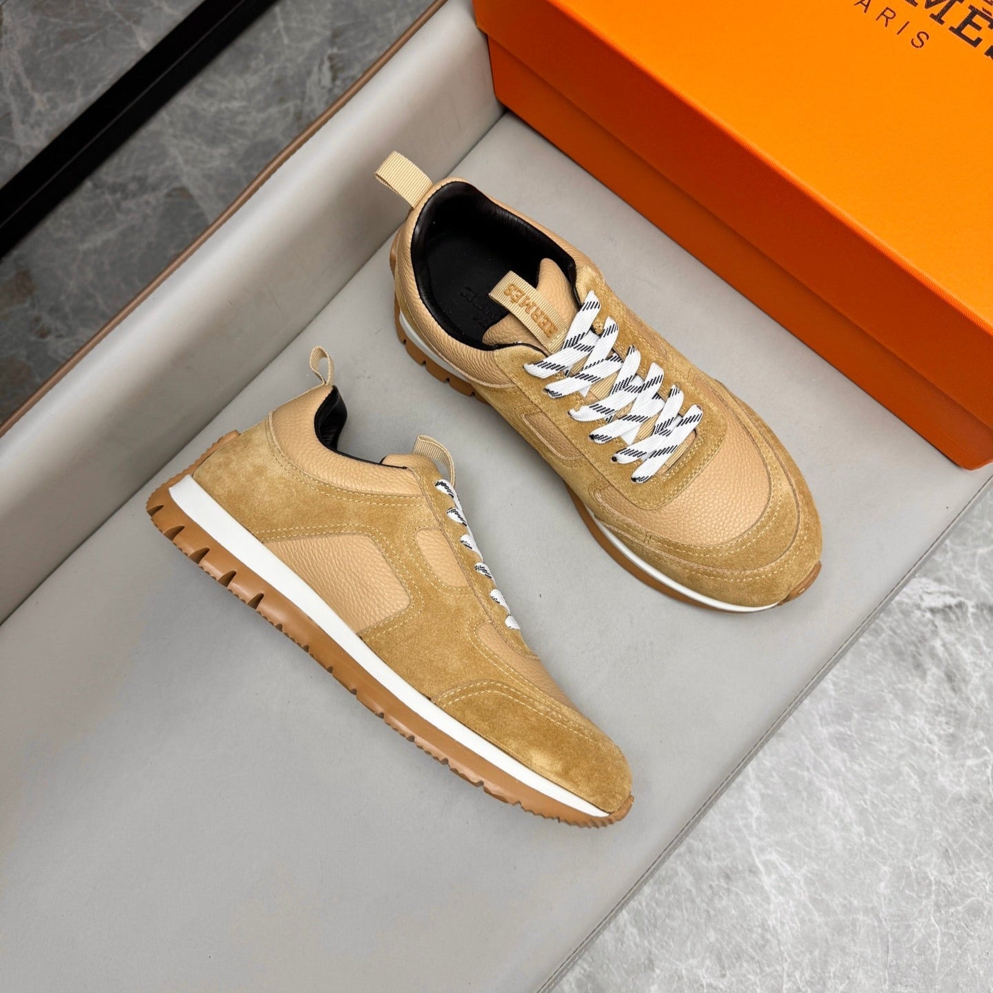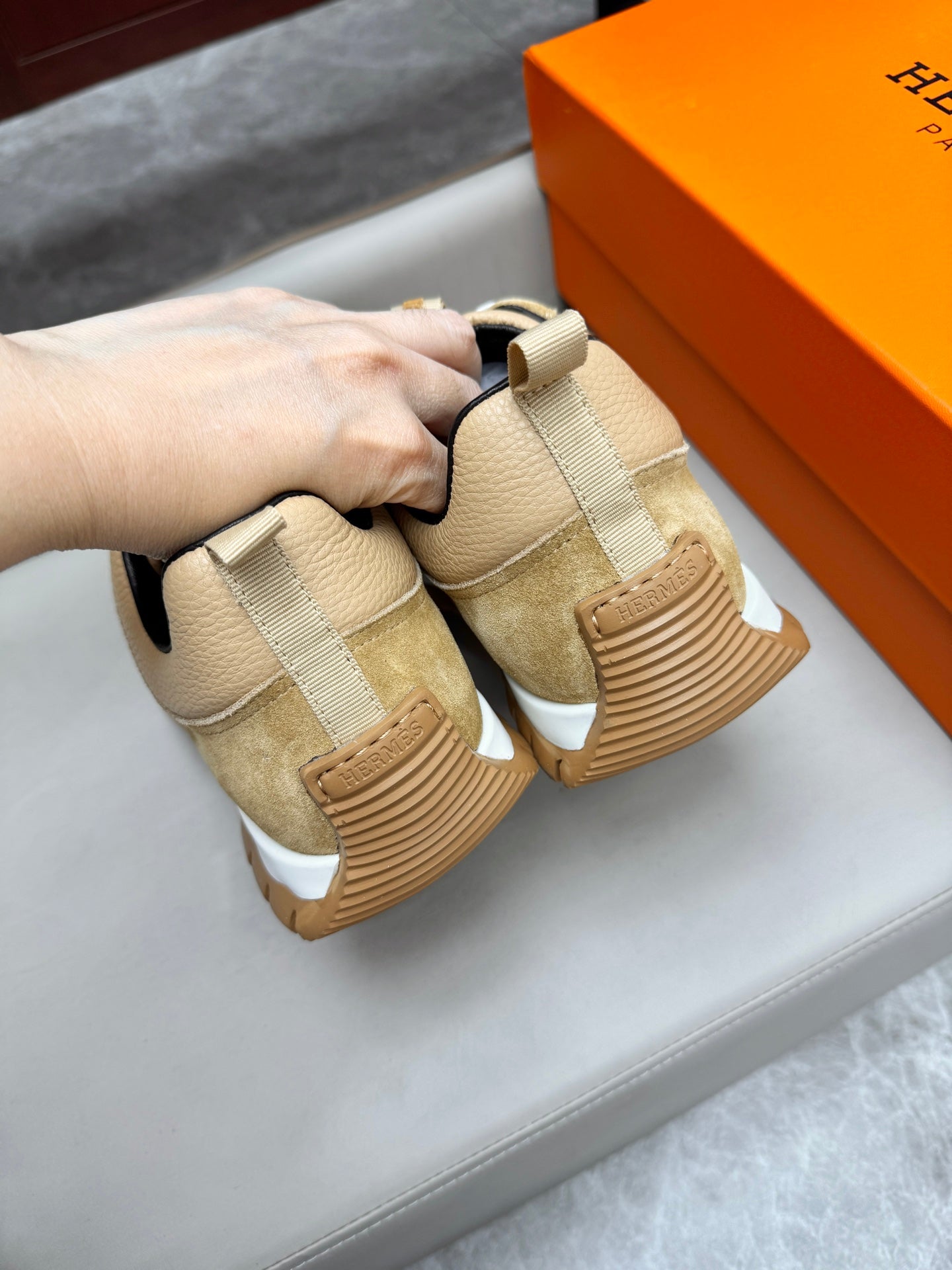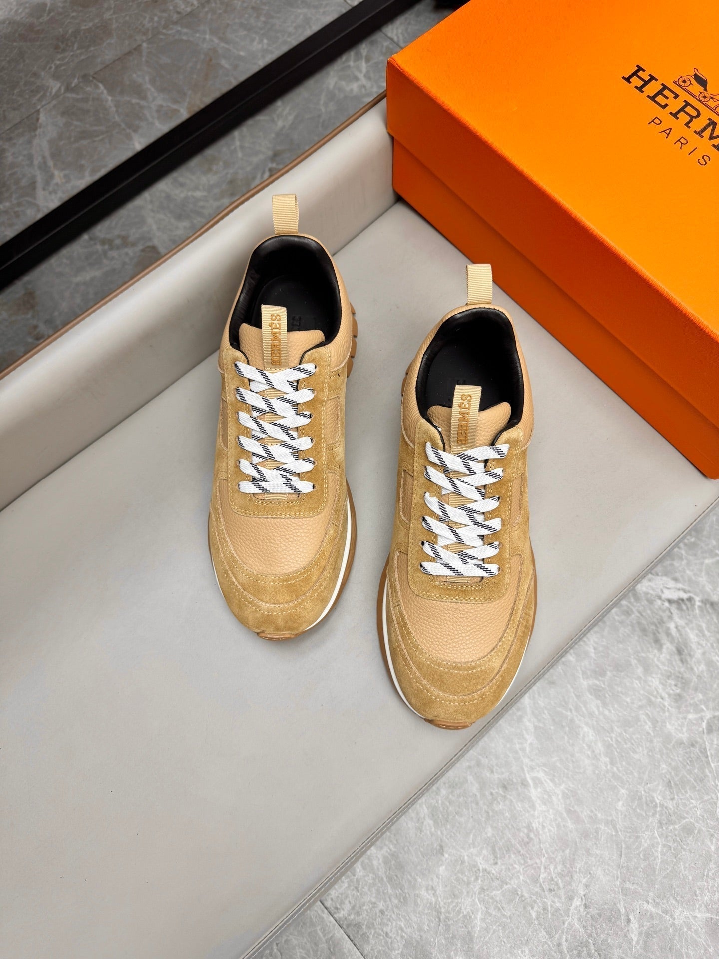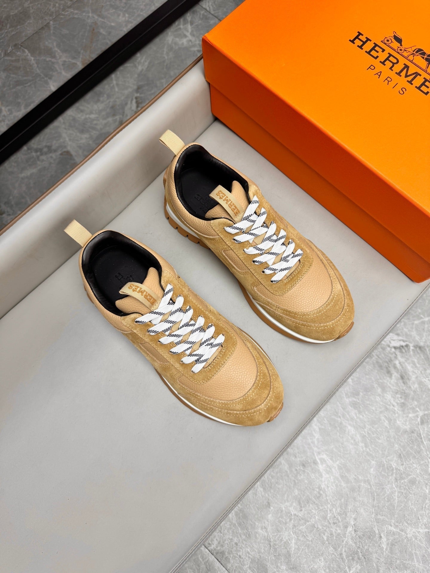 HM Men's Sneaker Beige Calfskin Suede 602058