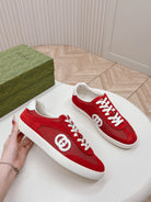 SNEAKER WITH INTERLOCKING G IN CHERRY RED SUEDE AND MESH