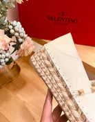 Valentino Rockstud Embellished Slip On Espadrille White Cowhide 240574