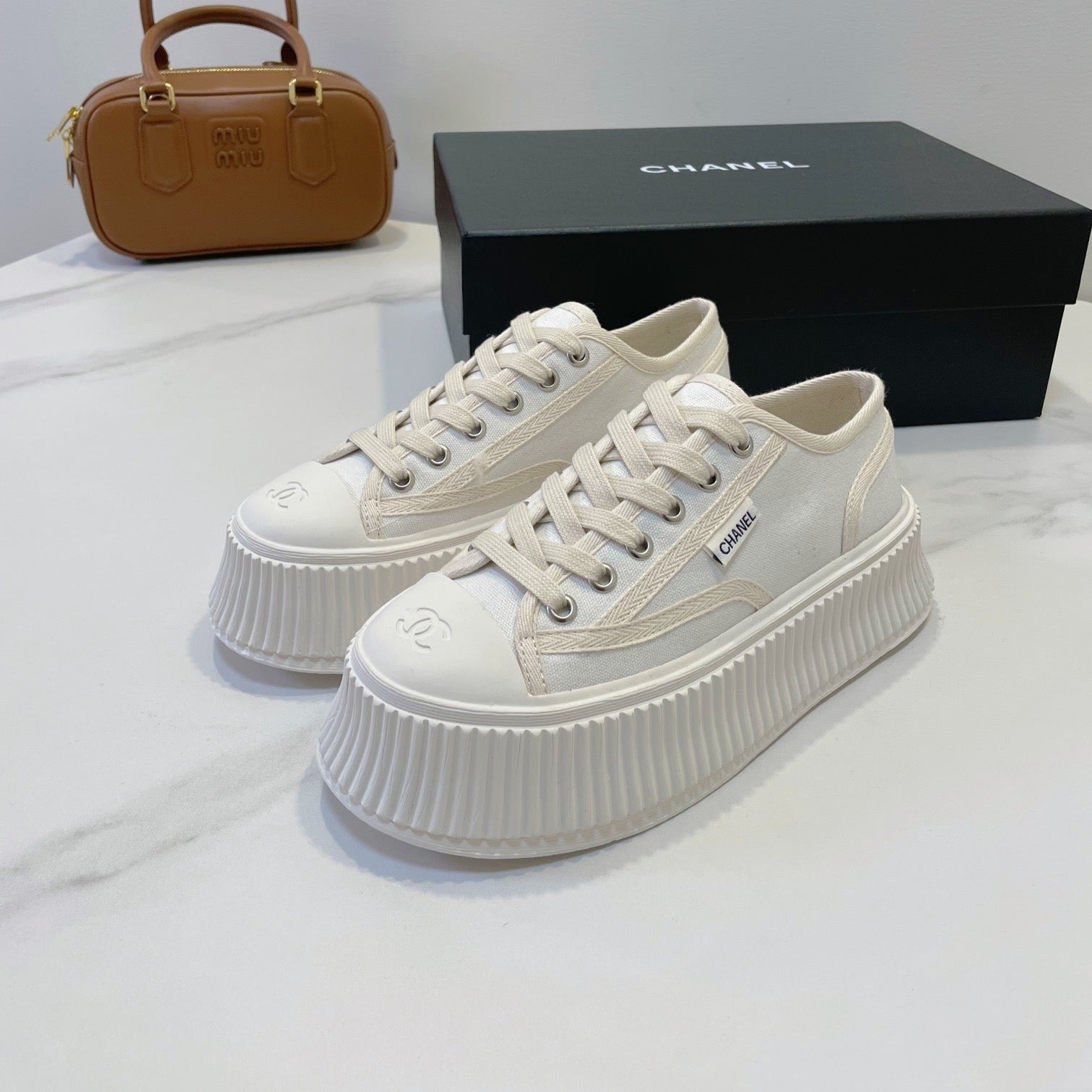 CC Low Sneaker 35mm White Textile Fabric And Lambskin