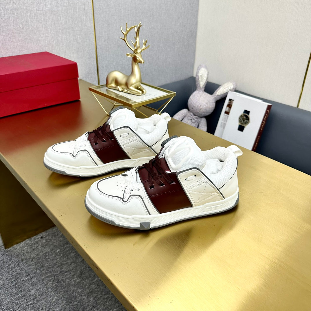 One Stud Sneaker Garavani Burgundy Calfskin White Fabric