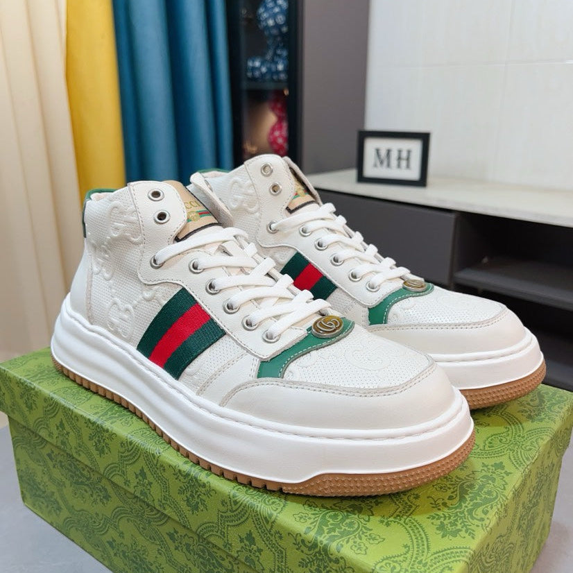 GG Men's Sneaker White Embossed Cowhide 471067