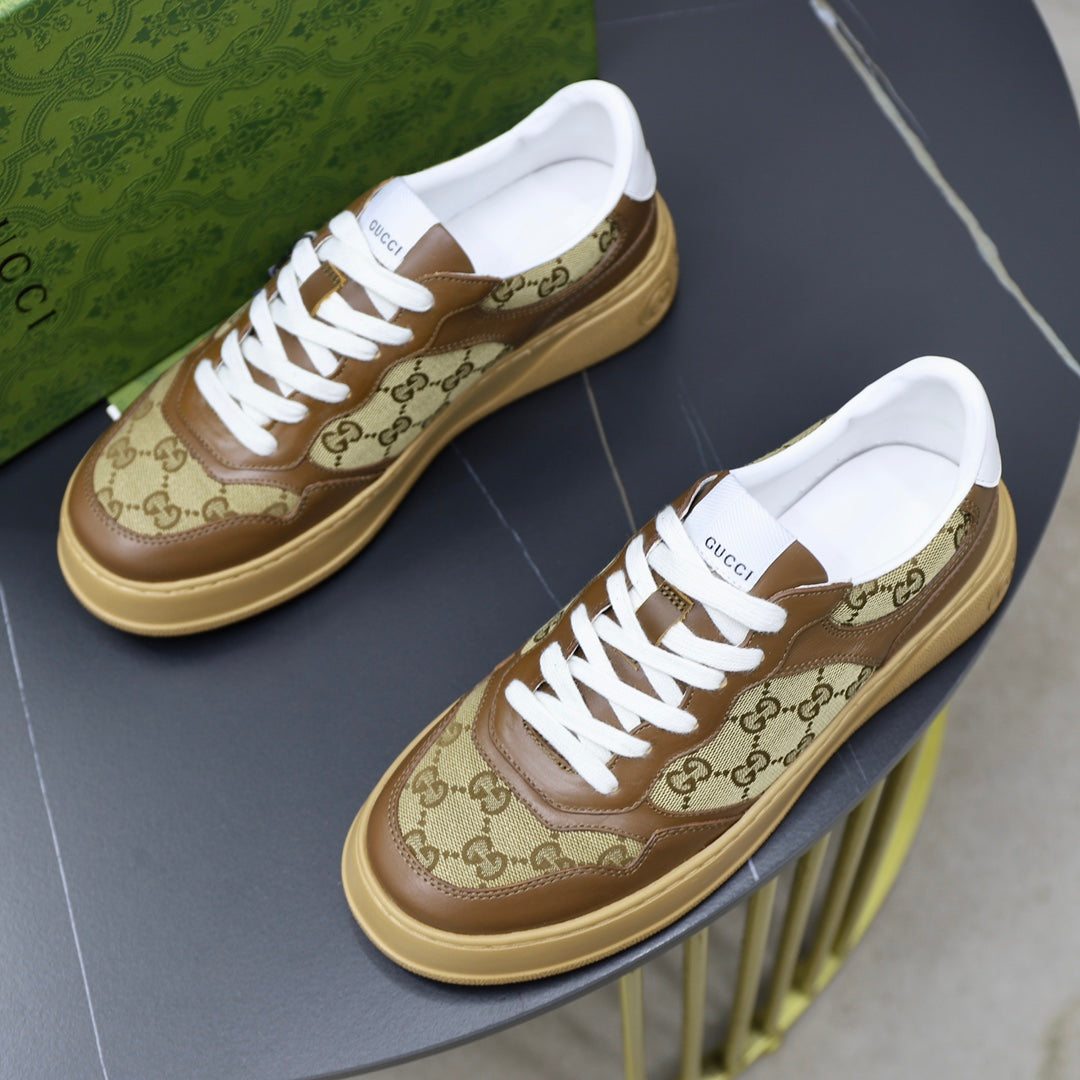 GG Men's Sneaker Brown White Canvas Calfskin 523337