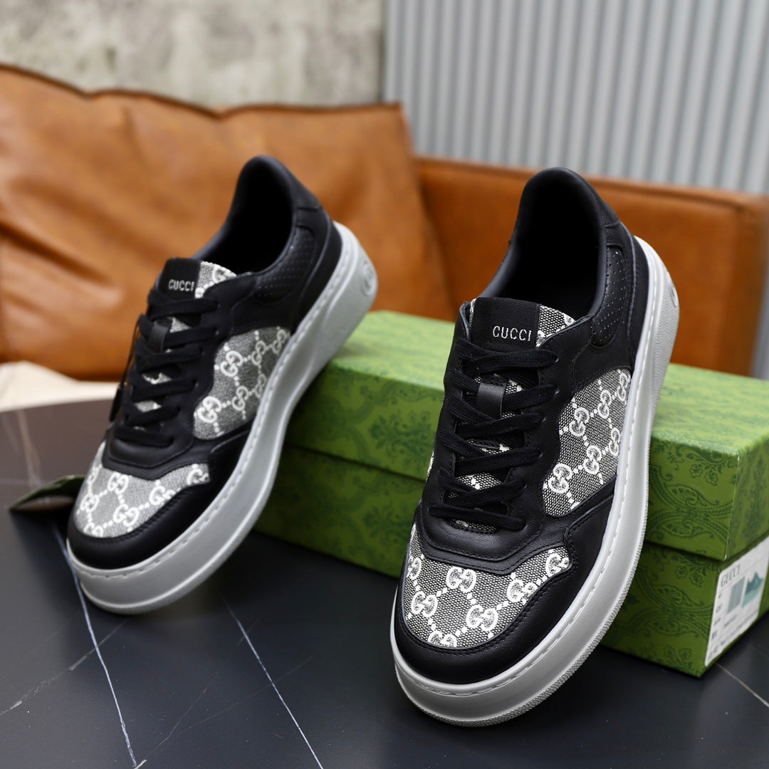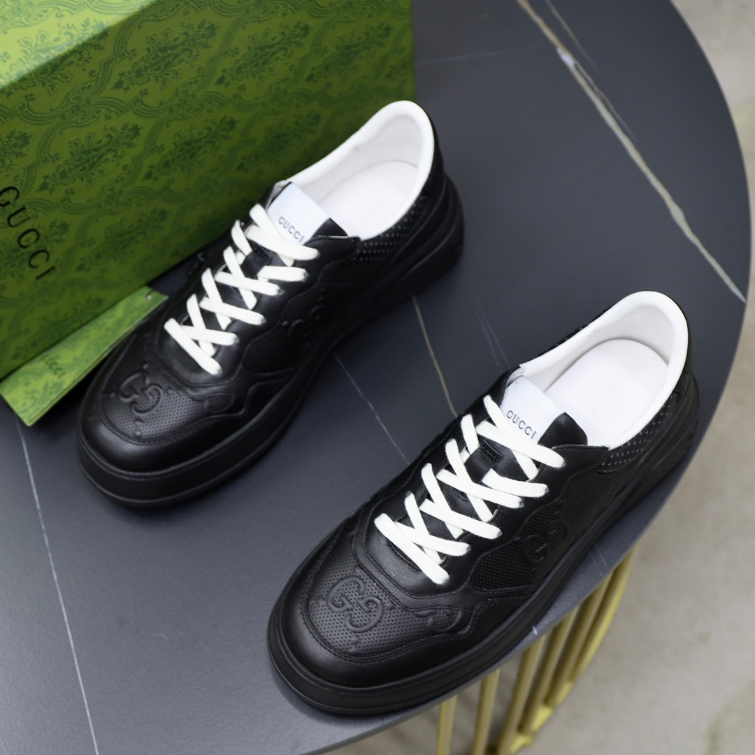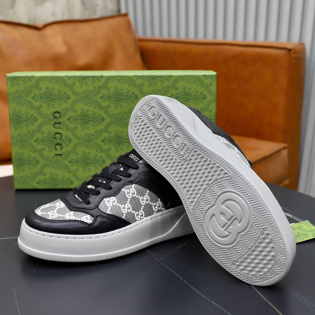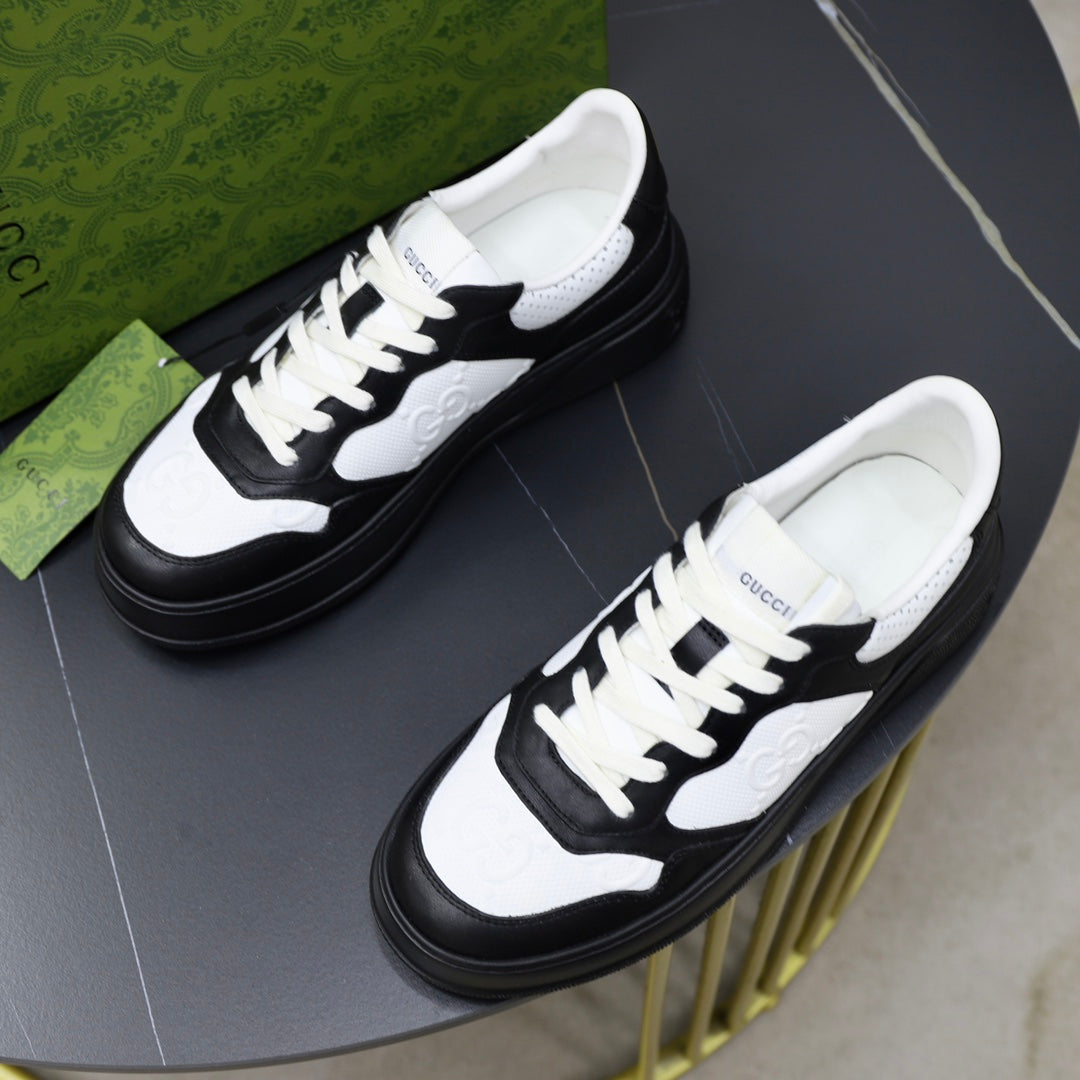 GG Men's Sneaker Black White Cowhide Embossed 523164