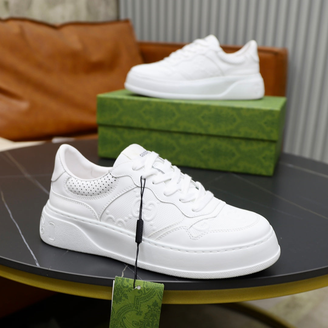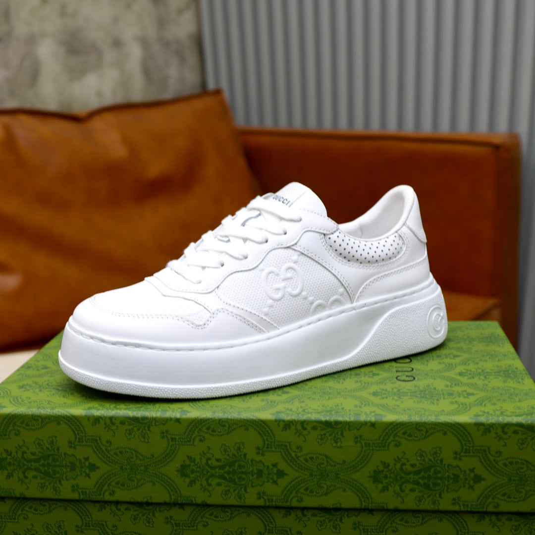 GG Men's Sneaker White Cowhide Embossed 523165