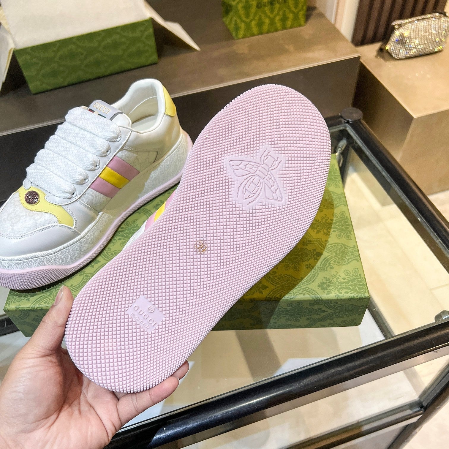 GG Men's Rhyton Sneaker Milk White Pink Calfskin 524491