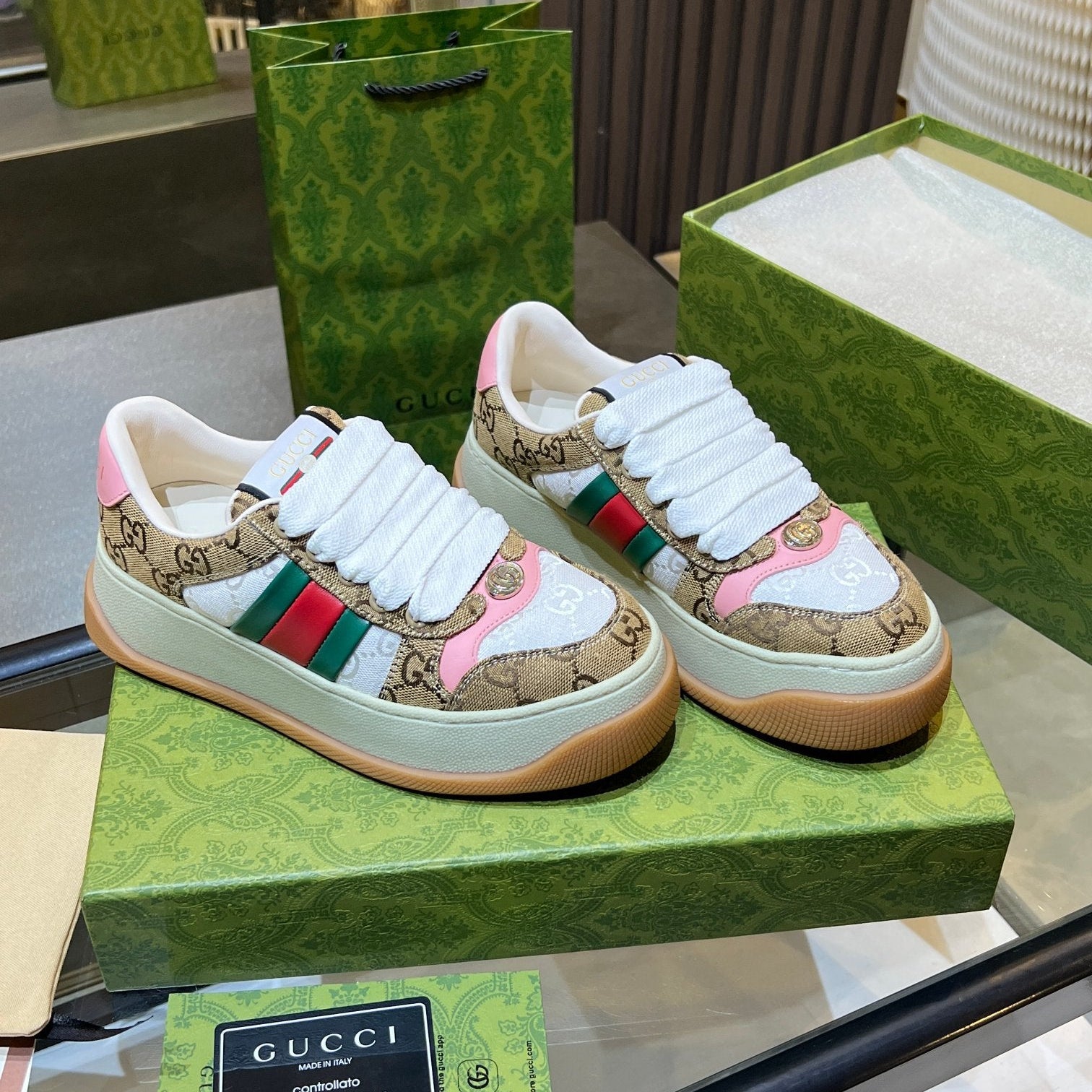 GG Men's Crystal Screener Sneaker Beige Diamond Canvas 523578