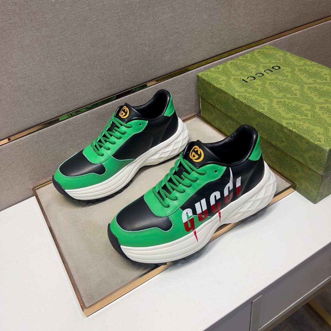 GG Men's Rhyton Sneaker Technical Knit Cowhide 524507