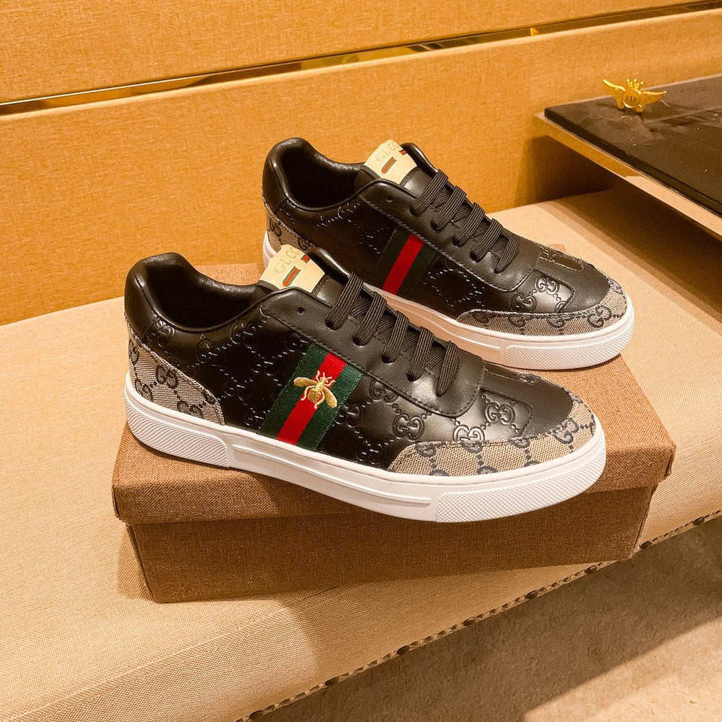 GG Men's Sneaker Black White Embossed Cowhide 525909