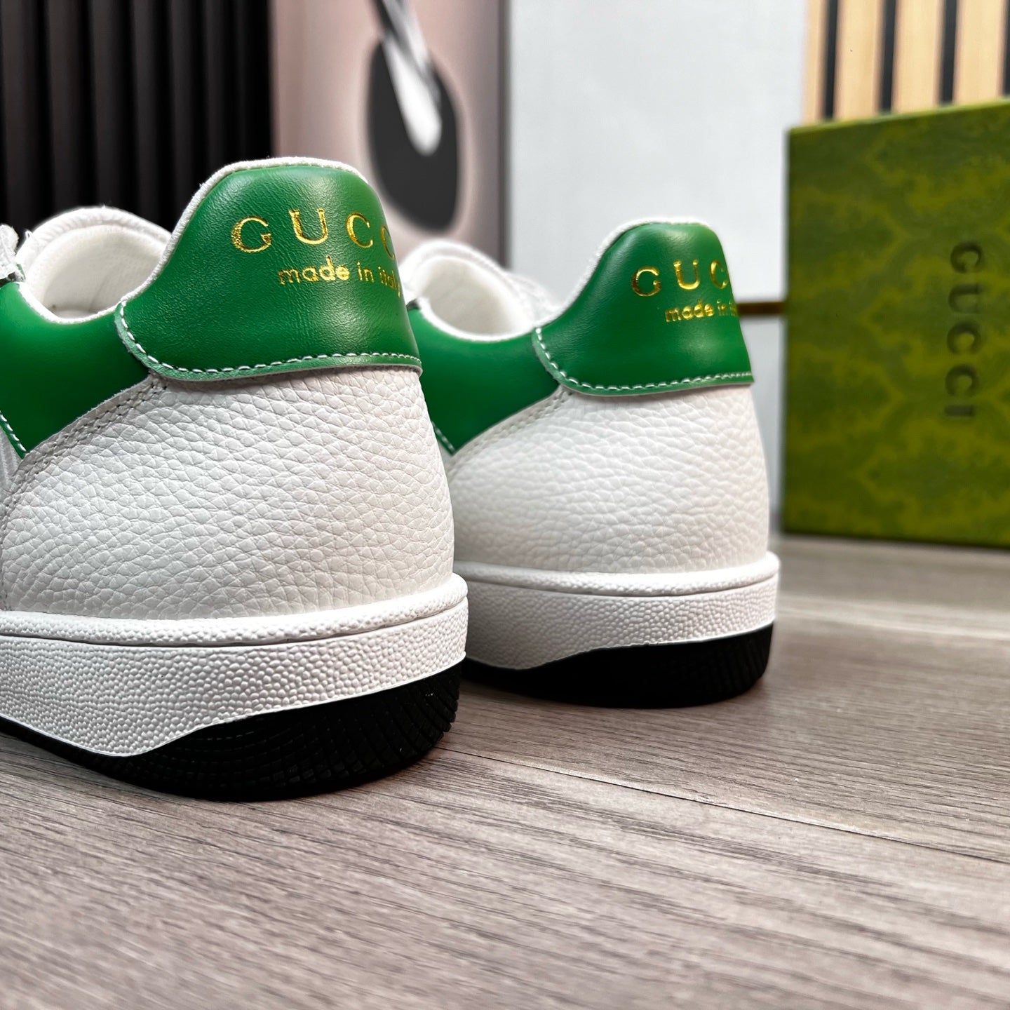 GG Men's Sneaker White Green Cowhide 529925