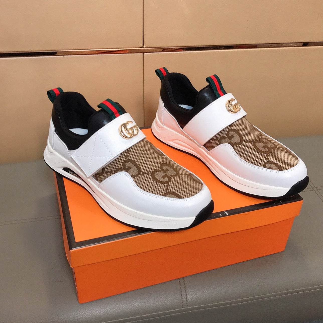 GG Men's Sneaker White Orange Cowhide 529926