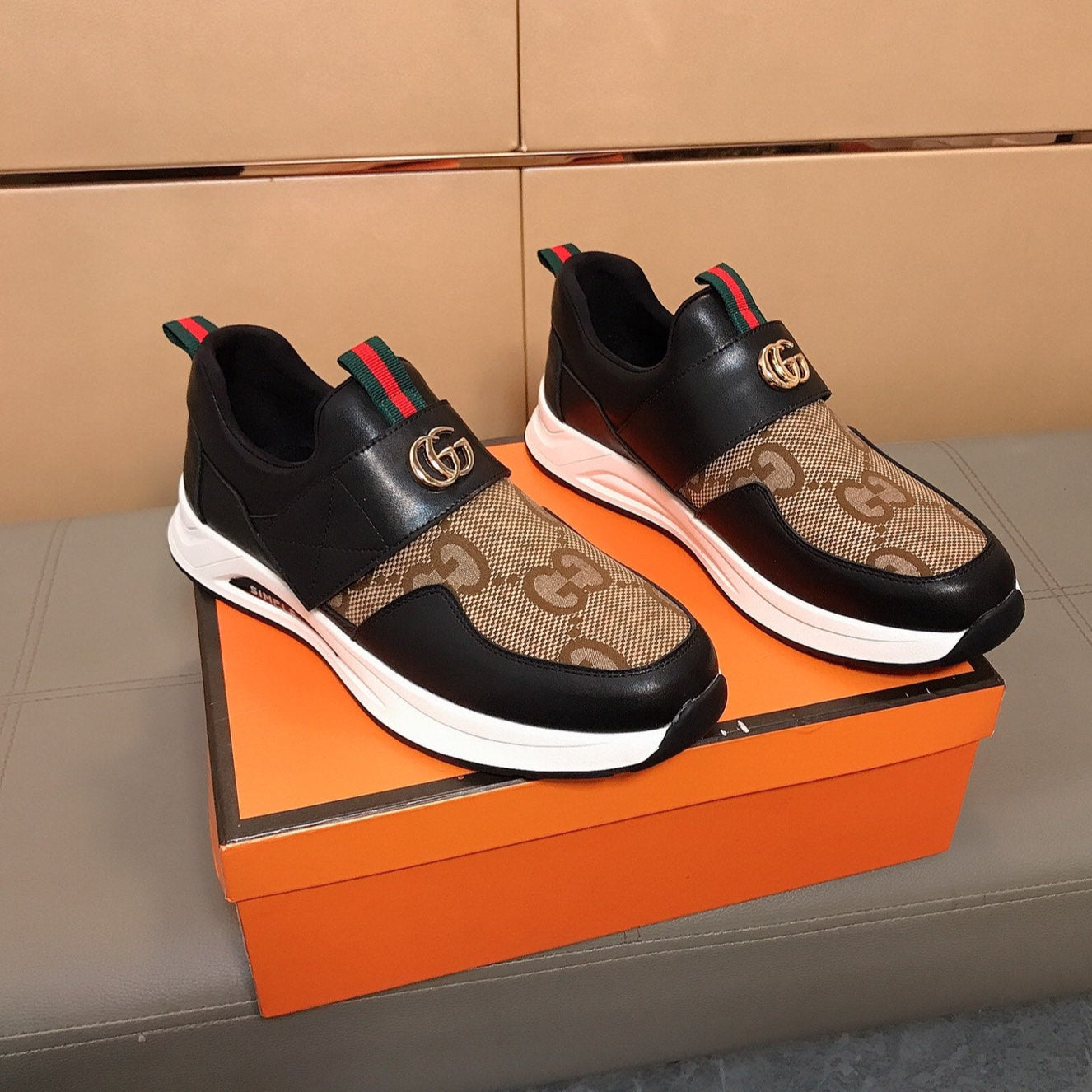 GG Men's Supreme Sneaker Brown Red Canvas 525925