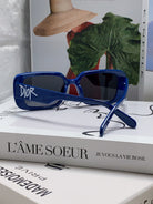 MONTAIGNE SUNGLASS 571595 IN BLUE ACETATE TEXT LOGO