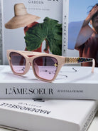 SQUARE SUNGLASSES 581358 IN NUDE PINK ACETATE EMBOSSED MONOGRAM LOGO