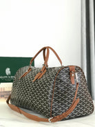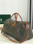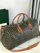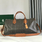 BOSTON 50 BAG IN BLACK GOYARDINE CANVAS AND TAN CALFSKIN TRIM