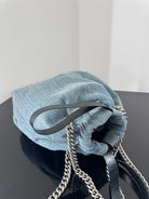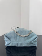 CRUSH SMALL TOTE BAG 26 IN BLUE WASHED DENIM SILVER HARDWARE