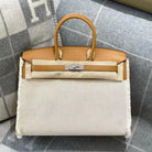 HM BIRKIN 35CM FRAY CANVAS SILVER HARDWARE