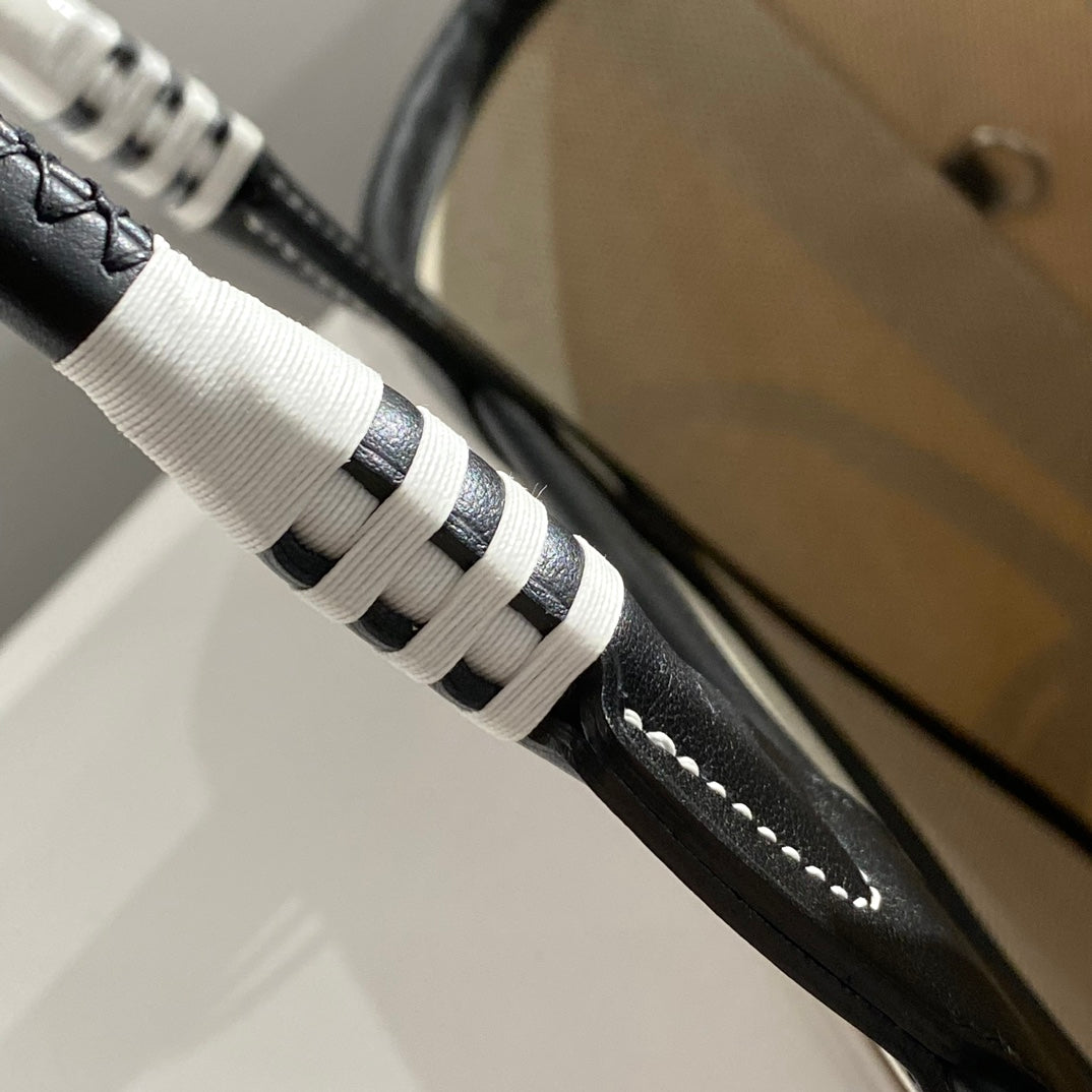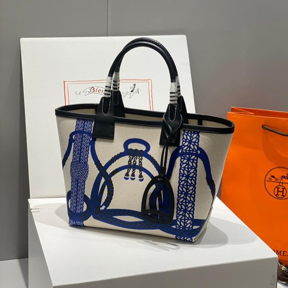 HM Steeple 28 Bag Black Calfskin White Blue Canvas