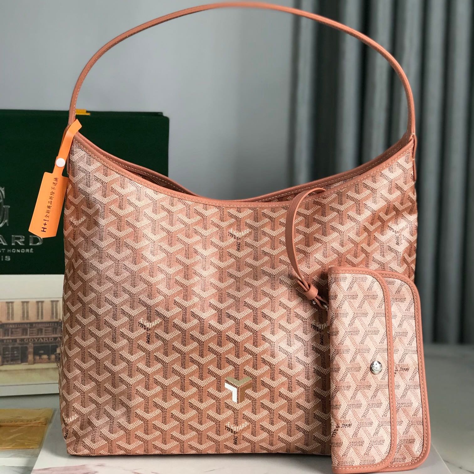 Bohème Hobo Bag 42cm Pink Canvas Chevroches Calfskin