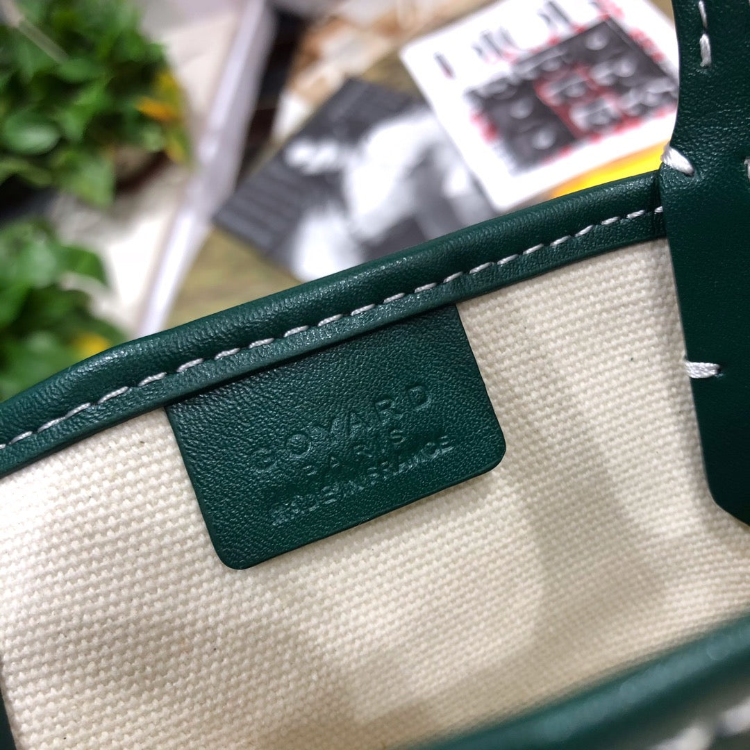 ANJOU MINI BAG 20 IN GREEN CALFSKIN AND GOYARDINE CANVAS