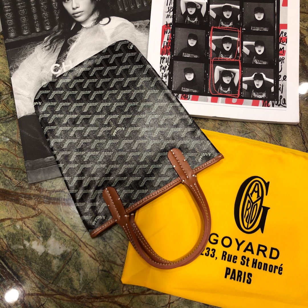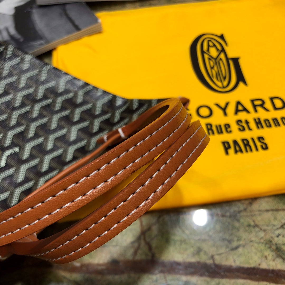 HARDY PM BAG 40 IN BLACK GOYARDINE CANVAS AND TAN TAURILLON LEATHER TRIM
