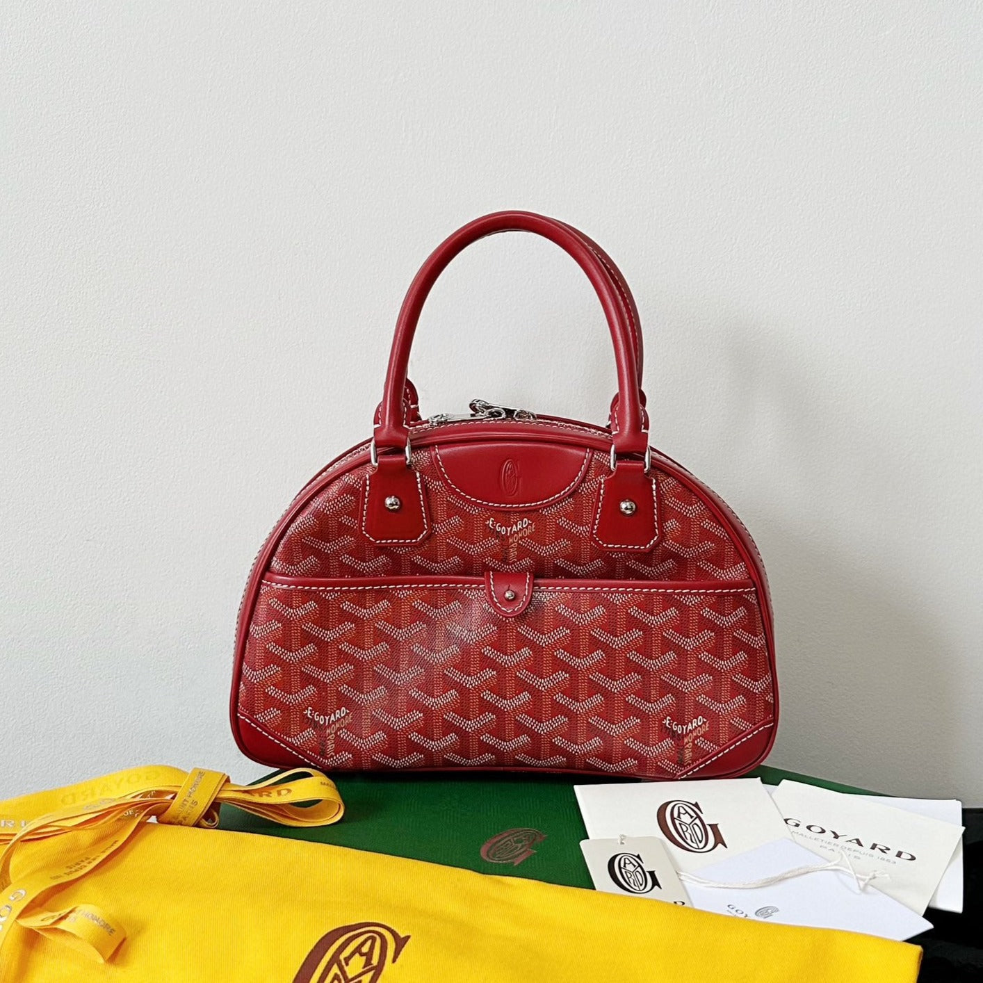 HARDY PM BAG 40 IN RED GOYARDINE CANVAS AND TAURILLON LEATHER TRIM