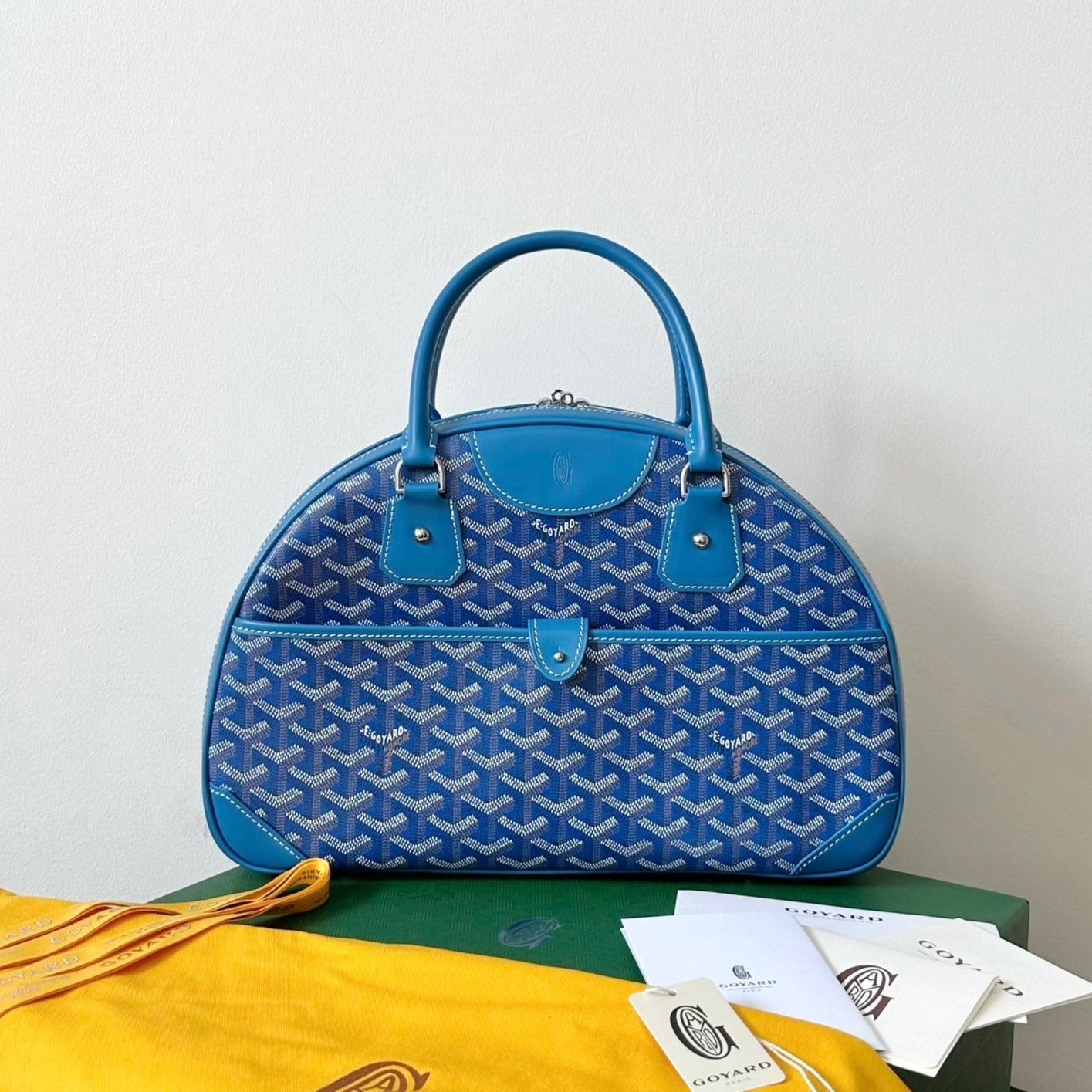 HARDY PM BAG 40 IN SKY BLUE GOYARDINE CANVAS AND TAURILLON LEATHER TRIM