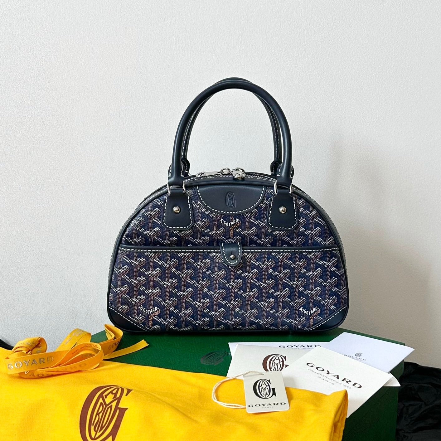 ANJOU MINI BAG 20 IN NAVY BLUE CALFSKIN AND GOYARDINE CANVAS