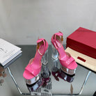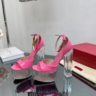 HIGH SANDAL 14CM IN BRIGHT PINK CALFSKIN AND TRANSPARENT PVC