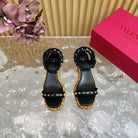 Rockstud Flatform Sandal 45mm In Black Calfskin And Raffia 102848