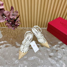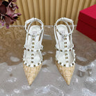 Rockstud Pump In Dark Beige Mix White Pied-de-poule Fabric And Cowhide 95mm 102083
