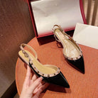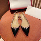 Rockstud Slingback Ballerina Flats Black Leather