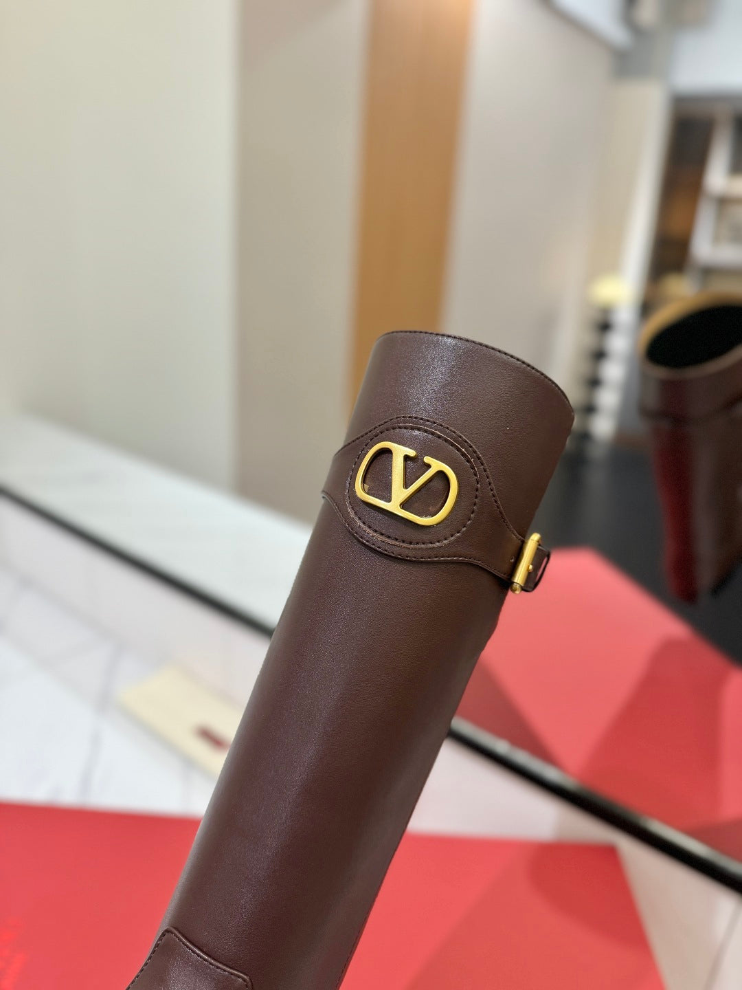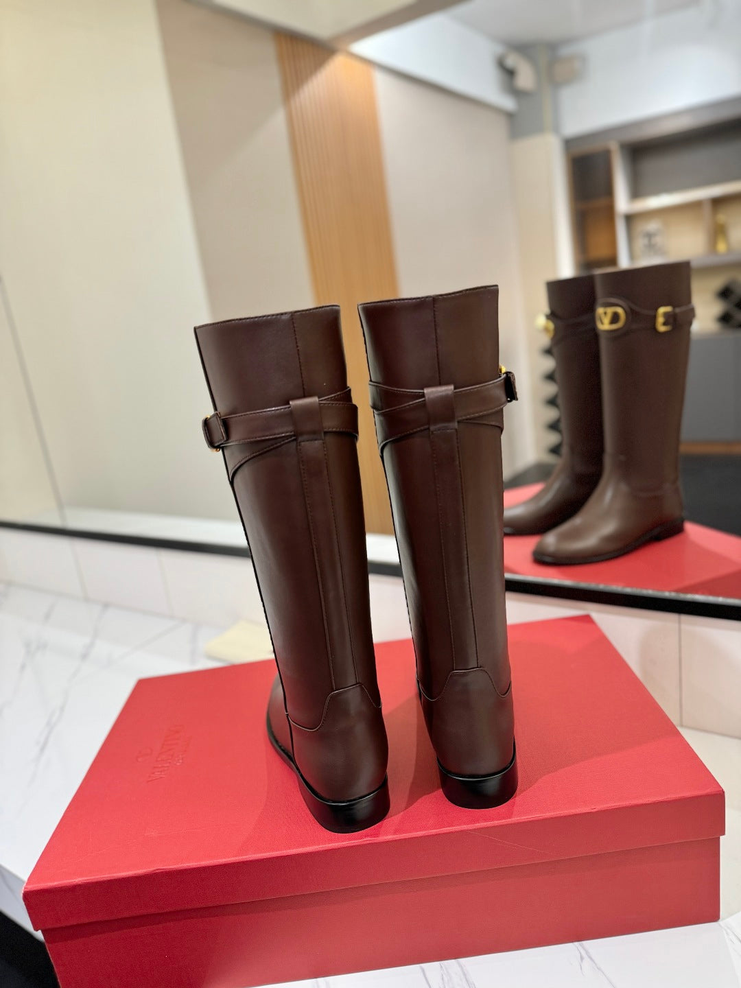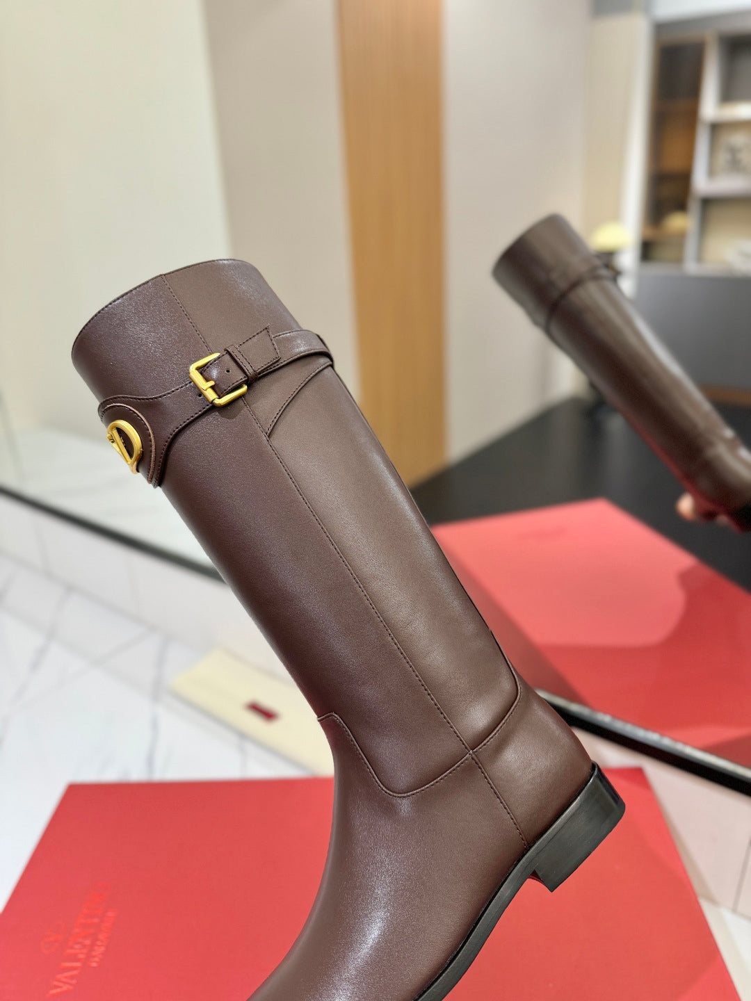 Valentino 25 Garavani Vlogo Signature Round Toe Brown Chocolate Calfskin Boots 505542