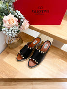 Valentino Mule Wedge Black Leather 240592