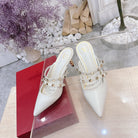 Valentino Rockstud Tower Heel Mules Sheepskin 239526