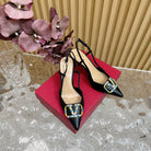 VLOGO SIGNATURE BLACK CALFSKIN SLINGBACK PUMP 80 MM